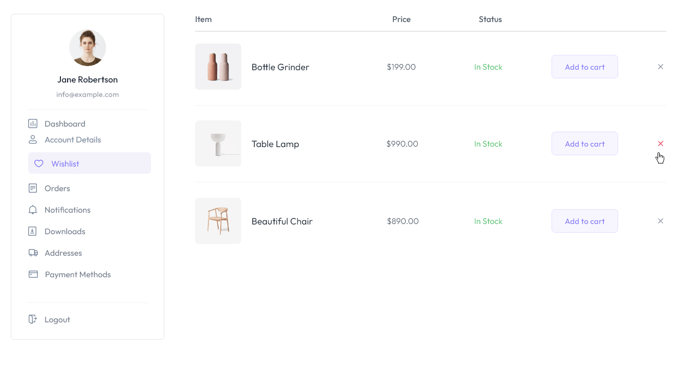 With My Account Page Builder for WooCommerce, you can add or remove custom sections from the My Account Page and alter the WooCommerce parts that come with it. These sections can contain any type of material, including words, photographs, videos, downloadable files, discount codes, and more.